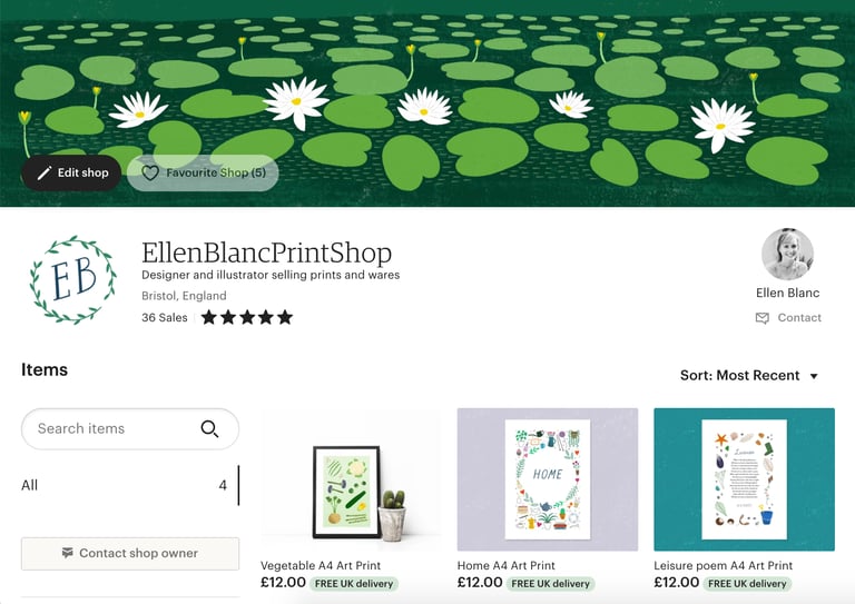 I sell prints and other items on my Etsy shop. Follow the link below to have a look for yourself.